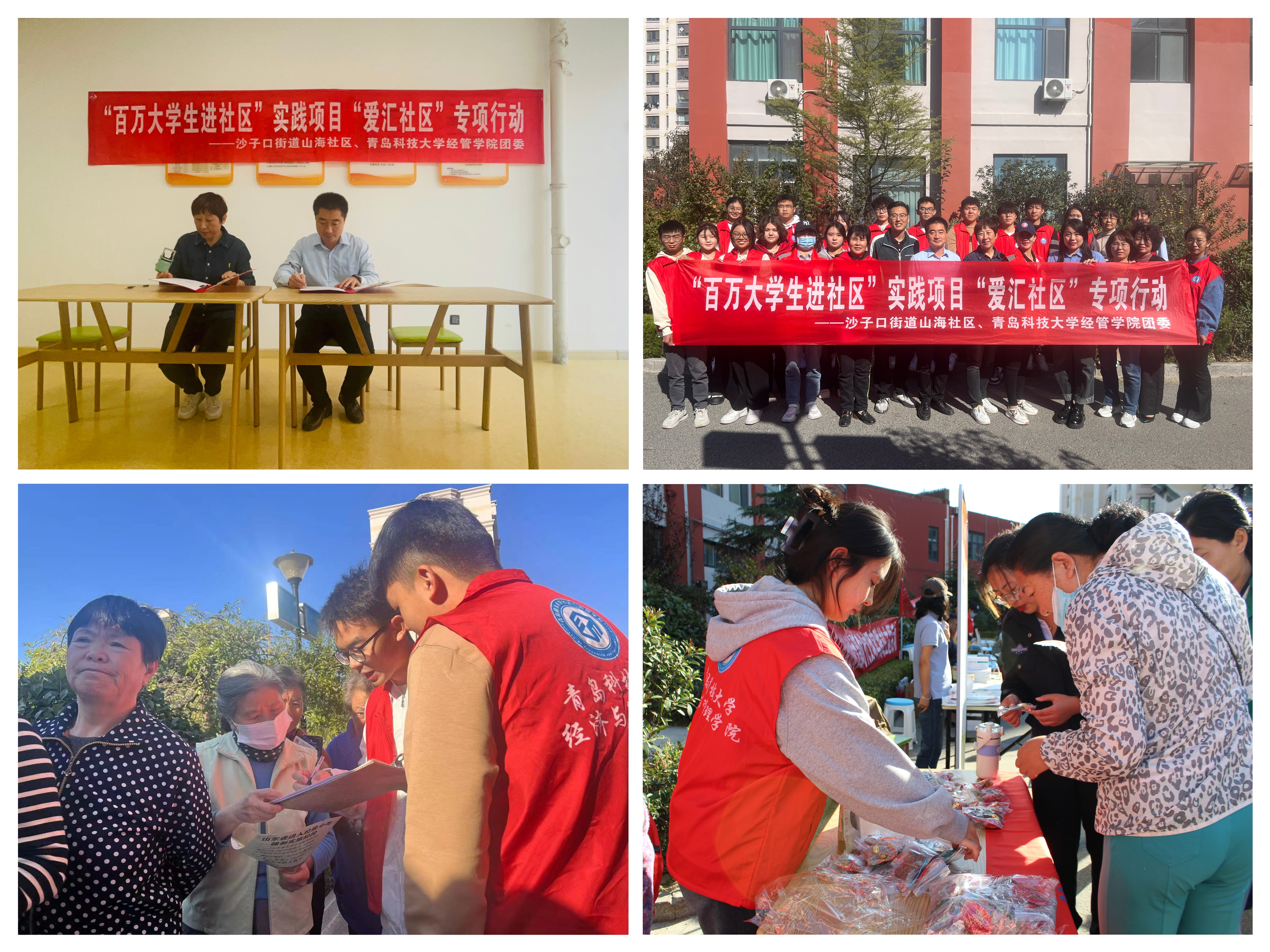 党建引领、团建互促,探索形成社会融入的共建格局。学院团委始终坚持统筹校内外资源,梳理社区需求,让大学生能精准“接单”,为青年学生提供实践机会。开展“爱汇社区”专项行动,与崂山区沙子口街道山海社区共建社区实践基地,专业化、规模化组织青年学生进入社区,面向社区开展防火宣传,进行健康安全提醒,有效增强了社区群众的安全意识,促进了社区健康文明建设。学院团委将继续坚持将志愿服务与与社区青春行动、青年志愿者服务社区行动紧密结合,推动校内校外、团内团外相衔接。