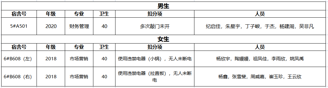 卫生检查结果及扣分细则请见附件,请各年级对照问题监督好不合格宿舍的整改。