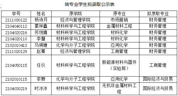 【公示】经管学院2022年转专业学生拟录取公示