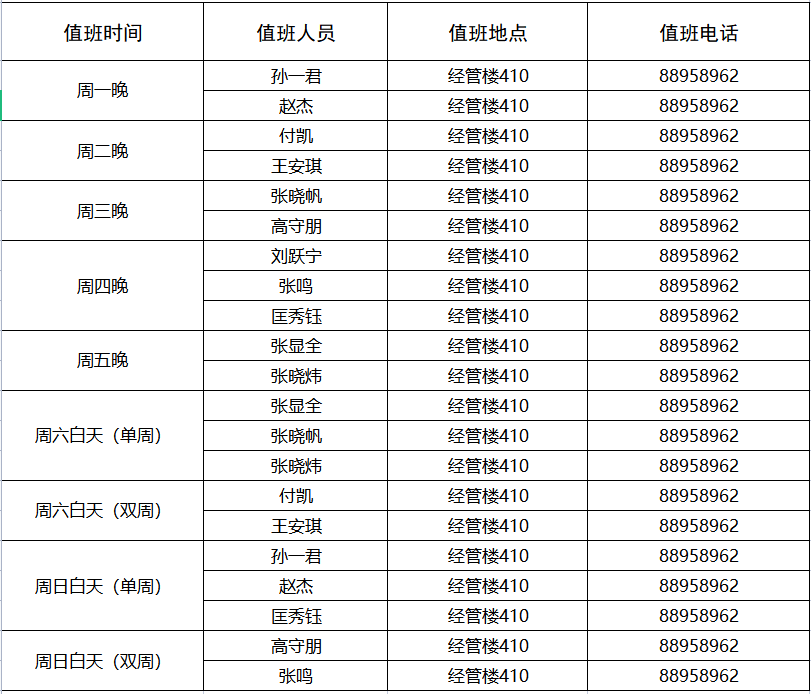 经管学院学工队伍2021-2022学年第二学期常态化值班安排表
