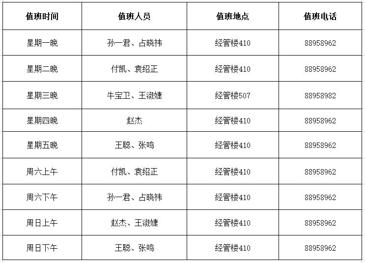 经管学院学工队伍2022-2023学年第二学期常态化值班安排表